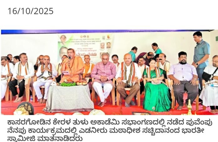 ಕರ್ನಾಟಕ ಗಡಿ ಅಭಿವೃದ್ಧಿ ಪ್ರಾಧಿಕಾರ, ಡಾ.ಪುಂಡೂರು ವೆಂಕಟರಾಜ ಪುಣಿಂಚಿತ್ತಾಯ ಪ್ರತಿಷ್ಠಾನ, ಕೇರಳ ತುಳು ಅಕಾಡೆಮಿ ವತಿಯಿಂದ ಬುಧವಾರ ಹೊಸಂಗಡಿ ದುರ್ಗಿಪಳ್ಳದ ಕೇರಳ ತುಳು ಅಕಾಡೆಮಿ ಸಭಾಂಗಣದಲ್ಲಿ ನಡೆದ ಪುವೆಂಪು ನೆನಪು ಕಾರ್ಯಕ್ರಮದಲ್ಲಿ ಅವರು ಮಾತನಾಡಿದರು.
