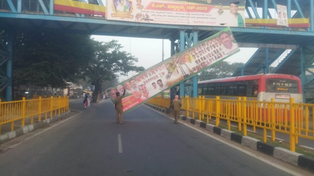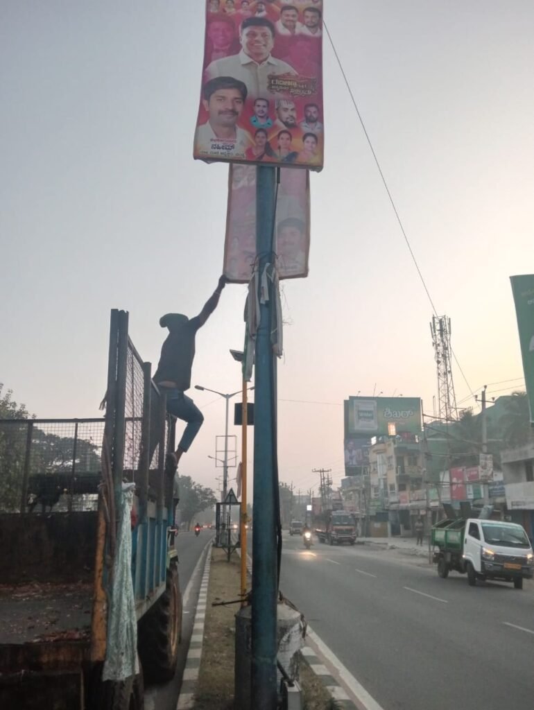 ಅಕ್ರಮ ಫ್ಲೆಕ್ಸ್ ಅಳವಡಿಕೆ:ದೂರಿಗೆ ಎಚ್ಚೆತ್ತ ಜಿಲ್ಲಾಡಳಿತದಿಂದ ತೆರವು ಕಾರ್ಯಾಚರಣೆ