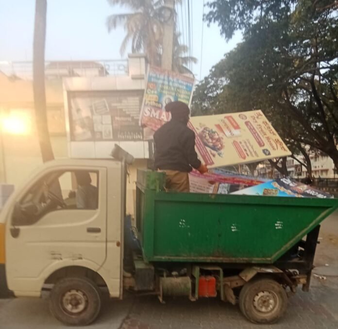 ನಗರಸಭೆ ವಿರುದ್ದ ದೂರು ದಾಖಲು:ಎಚ್ಚೆತ್ತ ಜಿಲ್ಲಾಡಳಿತದಿಂದ ಅಕ್ರಮ ಫ್ಲೆಕ್ಸ್ ತೆರವು ಕಾರ್ಯಾಚರಣೆ