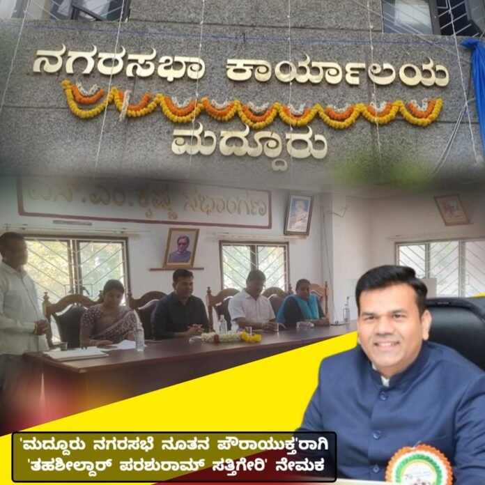 ಮದ್ದೂರು ಪುರಸಭೆಯನ್ನು ನಗರಸಭೆಯನ್ನಾಗಿ ನಾಡ ಆಳಿಕೆ ಮೇಲ್ದರ್ಜೆಗೆರಿಸಿದ್ದು, ಸರ್ಕಾರದ ಅಧಿಸೂಚನೆಯಂತೆ ಜಿಲ್ಲಾಧಿಕಾರಿ ಡಾ. ಕುಮಾರ್ ಅವರು ಮುಂದಿನ ಆದೇಶದವರೆಗೆ ಮದ್ದೂರು ತಹಶೀಲ್ದಾರ್ ಪರಶುರಾಮ್ ಸತ್ತಿಗೇರಿ ಅವರನ್ನು ಪ್ರಭಾರ ಪೌರಾಯುಕ್ತರನ್ನಾಗಿ ನೇಮಕ ಮಾಡಿ ಆದೇಶ ಹೊರಡಿಸಿದ್ದಾರೆ.