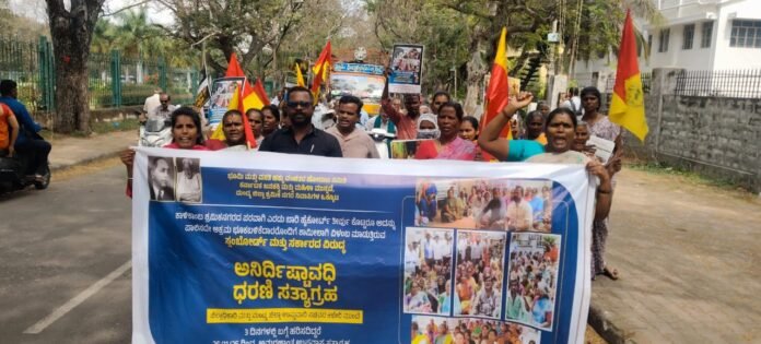 ಹಳೇ ಮೈಸೂರು, ನ.24: ಮಂಡ್ಯ ನಗರದ ಕಾಳಿಕಾಂಭ ಶ್ರಮಿಕ ನಗರದಲ್ಲಿ ಮನೆಗಳನ್ನು ಕಟ್ಟದೇ ವಿಳಂಬ ಧೋರಣೆ ತೋರುತ್ತಿರುವ ಸ್ಲಂ ಬೋರ್ಡ್, ಶಾಸಕರು, ಜಿಲ್ಲಾ ಉಸ್ತುವಾರಿ ಸಚಿವರು ಹಾಗೂ ಸರ್ಕಾರದ ನಡೆ ಖಂಡಿಸಿ ಸೋಮವಾರದಿಂದ ಮಂಡ್ಯ ಜಿಲ್ಲಾಧಿಕಾರಿ ಕಚೇರಿ ಬಳಿ ಕಾಳಿಕಾಂಭ ಶ್ರಮಿಕ ನಿವಾಸಿಗಳು ಅನಿರ್ಧಿಷ್ಟಾವಧಿ ಧರಣಿ ಸತ್ಯಾಗ್ರಹ ಆರಂಭಿಸಿದ್ದಾರೆ.